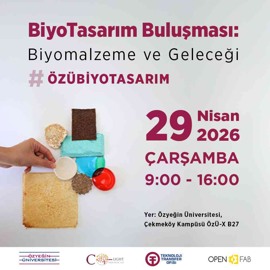 Özyeğin Üniversitesi ev sahipliğinde gerçekleştirilecek BiyoTasarım Buluşması, bu alanda çalışan ve ilgi duyan öğrencilerin, araştırmacıların, girişimcilerin ve sürdürülebilirlik alanında çalışan herkesin katılımına açıktır. Etkinlik ücretsiz olup, kayıt gerektirmektedir.