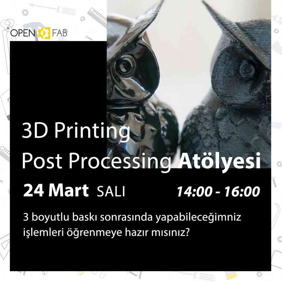 Baskısı alınan ürünlerin yüzey iyileştirme işlemlerinin öğretileceği atölye çalışmasında ;atölye çalışmasında, destek temizlenmesi, zımparalama, astarlama, boyama teknikleri, delme gibi adımlar izlenecektir.
