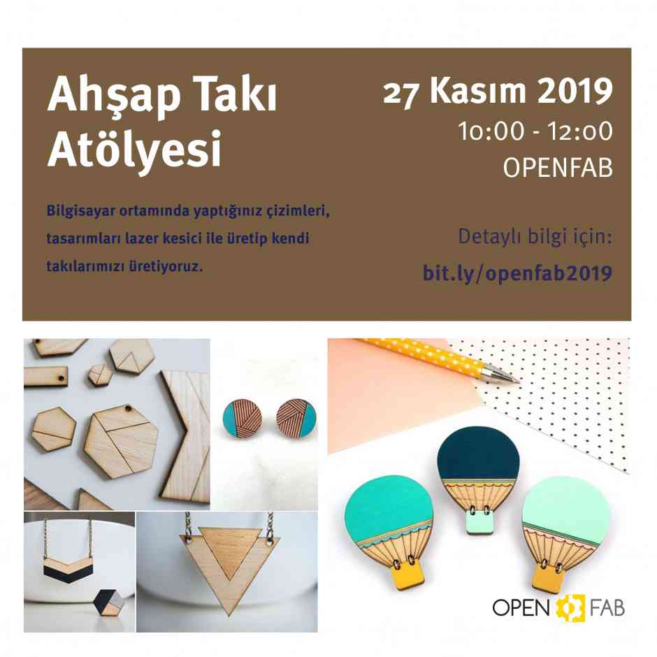 Fotoğraf Galerisi Bilgisayar ortamında takılarımızı tasarlayarak, lazer kesiciler ile üretiyoruz. Tarih: 27 Kasım Çarşamba | 10:00 - 12:00 Yer: OPENFAB
