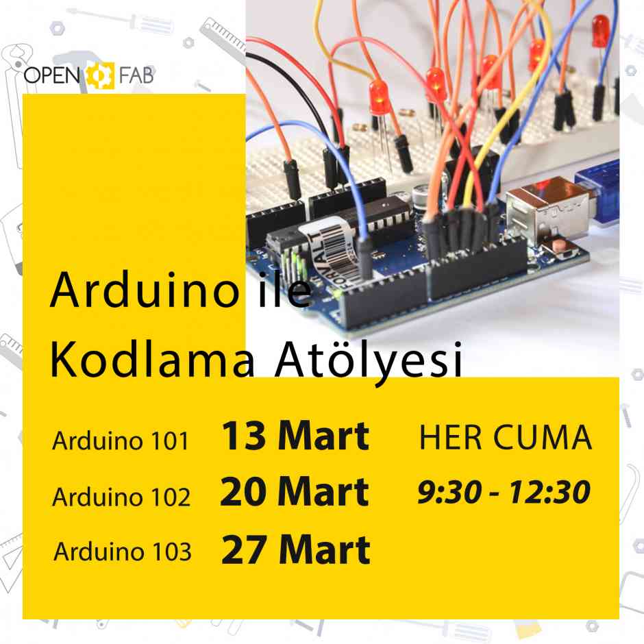 • Arduino 102 ve 103 atölyesine daha önce Arduino ile çalışmış, Arduino 101 atölyesine katılanlar ya da önceden OPENFAB’ten Arduino dersi almış olanlar katılabilir.
