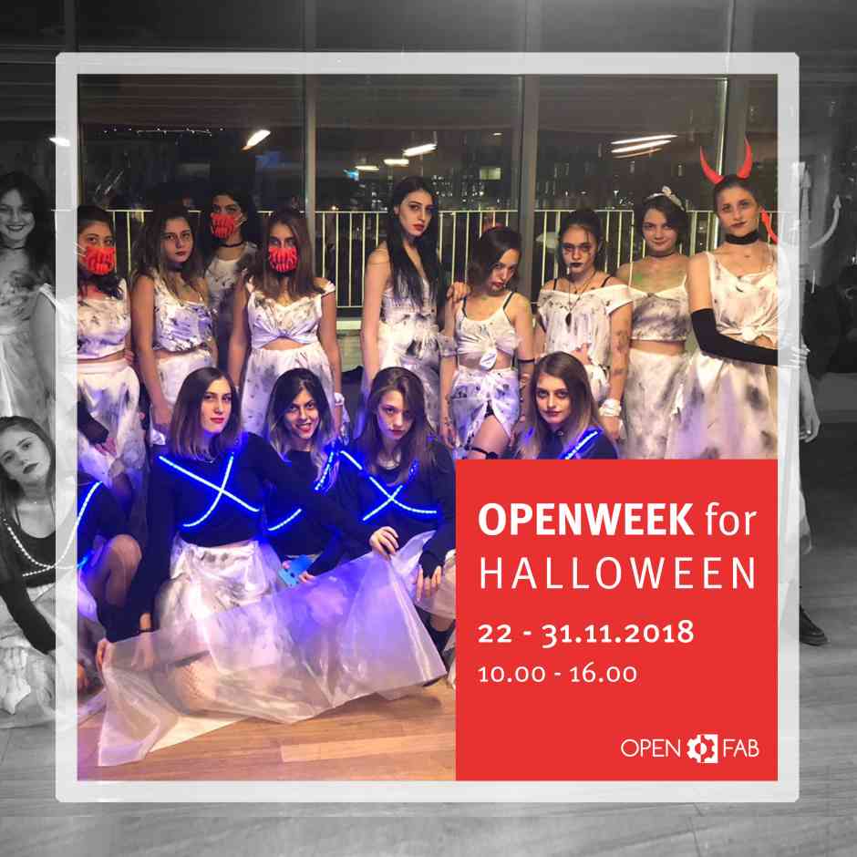 Özyeğin Üniversitesi’nde 31 Ekim 2018 akşamı gerçekleştirilecek olan Halloween Partisi için kostüm , aksesuar ya da projelerini üretmek, destek almak için OPENFAB’i kullanabileceklerdir. İlk yapmanız gereken projenizi bizlerle paylaşmanız :)Üretme ve öğrenme heyecanını kap gel :)